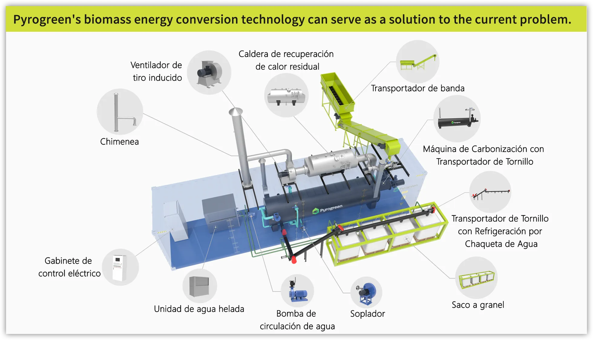Alta eficiencia térmica y alta producción de calidad y cantidad de biocarbón.